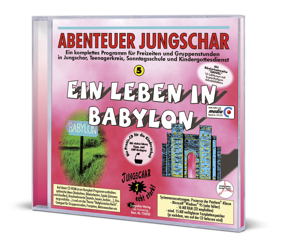 Das bekannte Buch aus der Reihe „Abenteuer Jungschar“ als CD komplett mit Freizeitlied als Audio-Datei. Enthält die Bibelarbeitsreihe ´Daniel´, Kreativelemente, Spielvorschläge, Vorlagen, Hintergrundinformationen zu den Babyloniern und vielem mehr. Kein BWS Modul!